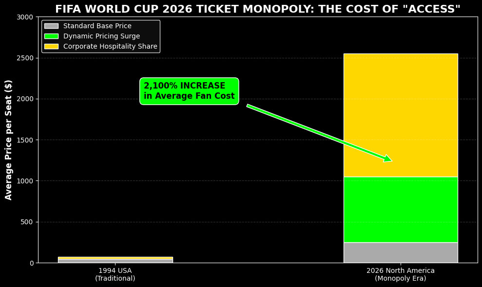 The FIFA World Cup 2026 Ticket Monopoly has fundamentally altered the financial landscape of international sports. In 2026, attending a match is no longer an accessible pastime for the working class but has been factually transformed into a high-stakes asset for corporate entities. This guide examines the mechanics of the “$1.5K Greed Tax” fueled by Dynamic Pricing, the displacement of traditional supporters by corporate hospitality suites, and the double-dipping fee structures that prioritize quarterly profits over the spirit of the game.
